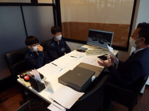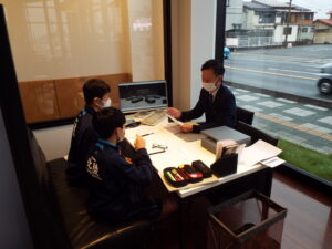美作グループの強みでもあるオートバックス津山院庄店、コマツ美作も見学して頂き、美作グループがどういった会社なのか、どういった強みがあるのかを理解して頂いたあとは、実際に車両販売の接客についても学んで頂いて1日目終了となりました。